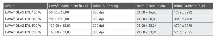 Anforderugen an Ihr Bild zu den verschiedenen LAVA® DYL Ausführungen: