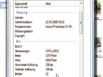 Unter dem Reiter "Details" (ggf. "Erweitert") finden Sie die Angaben zu Bildgröße (Pixel) und Auflösung (dpi).