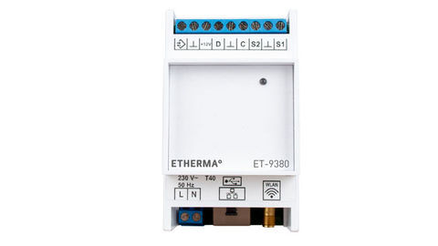 Das kompakte Gateway ET-9080 ist die Neuerung im Eis- und Schneemeldesegment. Mit Hilfe des Gateways kann erstmalig ein Eis- und Schnellmeldesystem eine Wettervorhersage verarbeiten und dem Kunden seinen Status mitteilen, konfiguriert die wichtigsten Einstellungen und fernbedient werden. Das Gateway dient der Verbindung des Eis- und Schneemelders vom ET-9300 und ggf. dessen Erweiterungsgeräte zum ETHERMA-Portal im Internet. Das Gateway kann per Kabel an einen handelsüblichen DSL/UMTS Router angeschlossen werden und verfügt zusätzlich über eine WLAN-Funktion und einen Antennenanschluss. Die Funkantenne für das Gateway ist inkludiert.