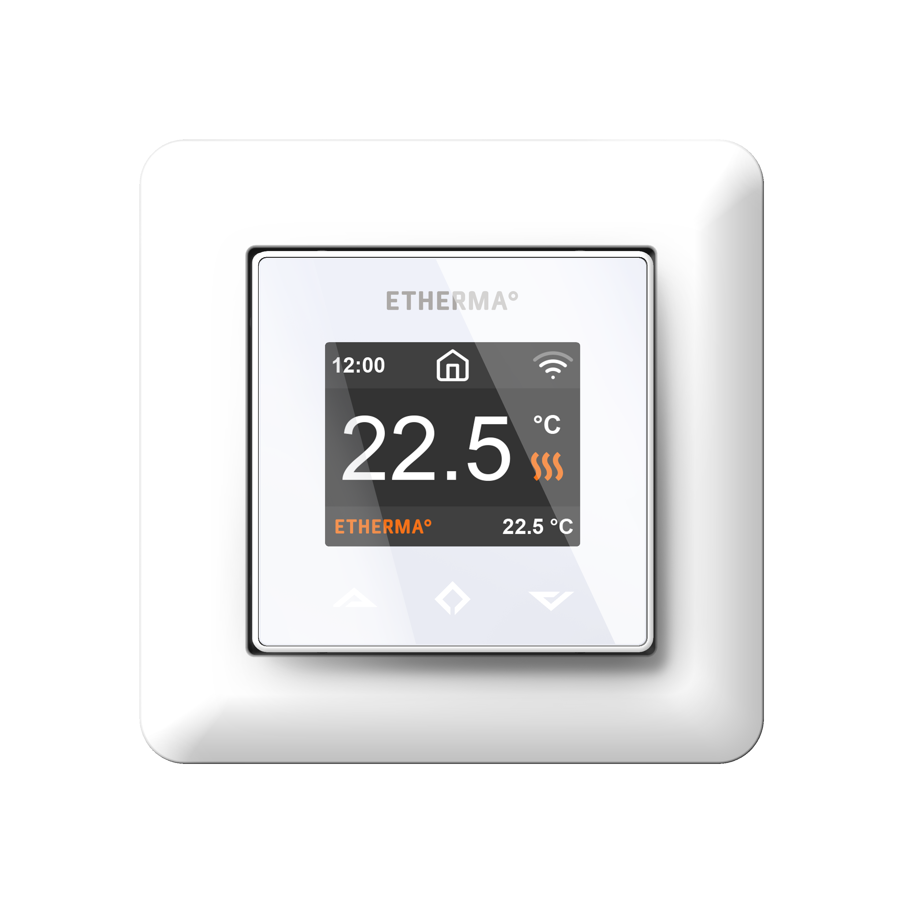 Typ: eTOUCH-PRO-1-WDer smarte eTOUCH PRO mit Selbstlernmodus kann neben der lokalen Bedienung auch in ein 2,4 GHz-WLAN integriert und dadurch ortsunabhängig von einem iOS- oder Android-Endgerät bedient werden. Der Regler verfügt über ein 1,8“-TFT-Farbdisplay mit drei kapazitiven Tasten zur Bedienung. Zur Optimierung des persönlichen Wohlbefindens und der Energiekosten kann aus fünf verschiedenen Betriebsmodi ausgewählt werden: Zuhause, Abwesenheit, Wochenprogramm, Frostschutz oder Leistungsregelung. Zudem hat das Fußboden-, Raum- oder Kombithermostat ein einstellbares Aufheizverhalten zur Schonung unterschiedlicher Bodenbeläge, eine Temperatursturzerkennung und ist Ökodesign-Richtlinien konform. Die Unterstützung einer Großzahl an handelsüblichen Temperaturfühlern ermöglicht ein einfaches Umrüsten von alten Thermostaten. Farbe: Hochglanz weiß, Temperaturbereich: 5-40 °C, Schalthysterese: 0,3 °C, Fühlerleitungslänge: 3 m (max. 50 m), Schaltstrom: 16 A, Gangreserve 36 h, WLAN Frequenzbereich: 2,4GHz 802.11bgn, App: XXX inkl. Easy-Start-Up Erstinstallation, Montage: auf UP-Schalterdose, Schutzart: IP 21, Systemaufbau: CE konform. Dieser Regler erfüllt folgende Regelungsfunktionen: TW (f2 / f3 / f4)