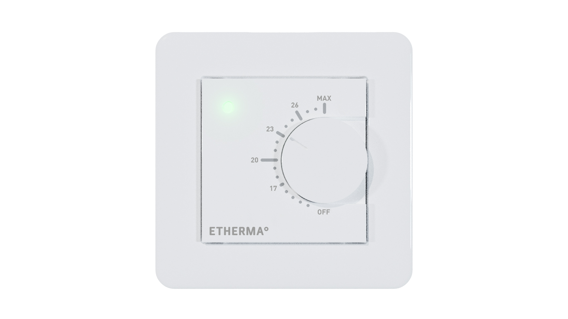 Typ: eBASIC-1Der eBASIC ist ein Schaltereinbauthermostat, das die Einfachheit des Drehrads mit moderner, effizienter Technik vereinigt. über das Drehrad kann man entweder die Raum- oder Bodentemperatur steuern. über Bluetooth 4.2 und der kostenlosen App eCONTROL sind weitere Funktionen wie Einschaltzeiten in einem Wochenprogramm und Anpassen des Betriebsmodus möglich. Der eBASIC verfügt über 4 Modi: Fußboden, Raum, Kombi oder PWM (in %). Ein Absenken der Temperatur ist mit der App und Wochenprogramm oder auch mittels Steuerleitung möglich. In Verbindung mit der App entspricht der eBASIC der ökodesign-Richtlinie. Temperaturbereich: 5-28 °C, Montage: UP-Dose, Farbe: Weiß, Bodenfühler: 3 m, Schutzart: IP 21, Schaltstrom: 16 A, Prüfzeichen: CE konform. Dieser Regler erfüllt folgende Regelungsfunktionen: TW (f2 / f4 / f8)
