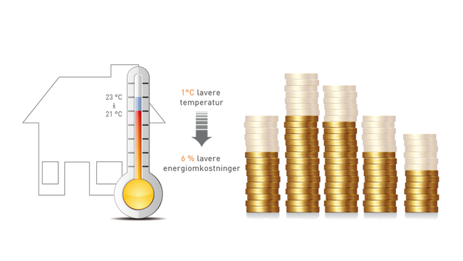 Strålevarmen fra gulvvarmen opleves som særligt behagelig og på grund af den høje virkningsgrad, vil rumtemperaturen kunne sænkes med op til 3°C - hver grad mindre sparer omkring 6% i energi og dermed penge.