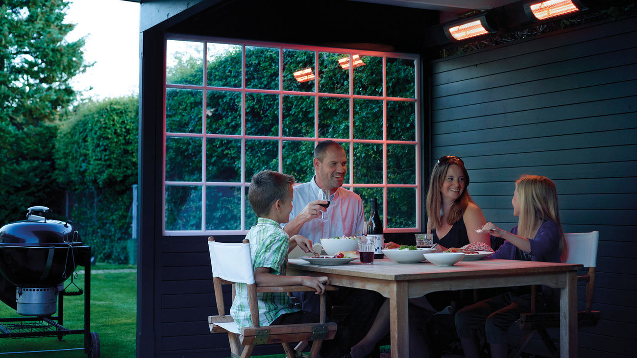 Montering i loft eller væg på terrasse, cafeer, altaner, markiser og parasoller.