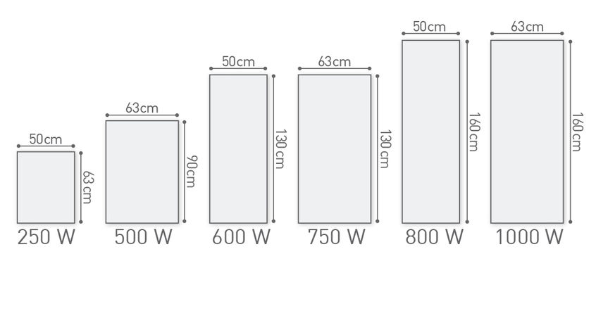 Valget af ydelse afhænger af rummets varmebehov (højde: 2,5 m) og varmeanvendelsen.