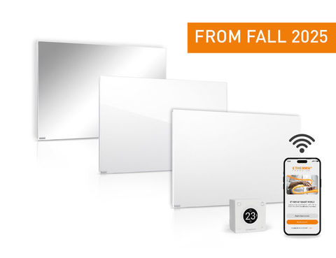 The basic model can be upgraded to the SMART version at any time with the SMART SET - consisting of SMARTBOX (radio receiver) and SMARTCUBE (thermostat). This allows you to conveniently control your infrared heater using the ETHERMA SMART app via WiFi - for maximum control, energy efficiency and convenience.Optimum heat radiation