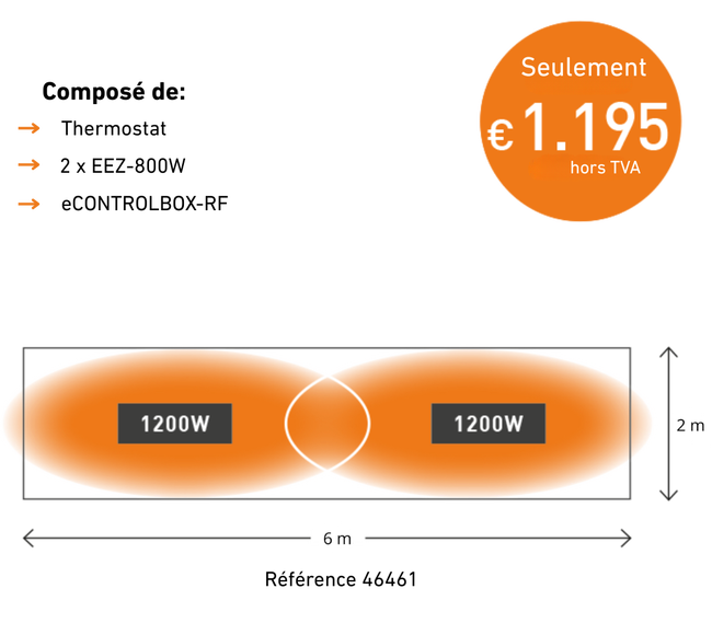 Le chauffage infrarouge est un moyen populaire et efficace de chauffer votre lieu de travail. Le grand avantage du chauffage infrarouge par rapport aux techniques de chauffage traditionnelles telles que les radiateurs ou le chauffage par le sol est qu'il chauffe directement les objets et les personnes dans la pièce, plutôt que l'air. Il n'y a donc pas de circulation d'air, ce qui augmente l'efficacité et rend le chauffage plus rapidement perceptible. Le chauffage infrarouge ETHERMA utilise des panneaux infrarouges qui peuvent être fixés au mur ou au plafond. Dès que le panneau chauffe, il émet une chaleur rayonnante qui réchauffe tous les objets dans la pièce. Les meubles, les sols et les murs absorbent cette chaleur et la restituent lentement dans la pièce. En seulement 10 minutes, le panneau infrarouge est complètement chauffé et commence à réchauffer la pièce, assurant une température confortable et constante.