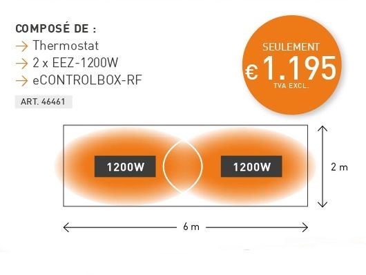 Les radiateurs plafonniers EEZ ont été développés pour le chauffage principal et d'appoint, ainsi que pour la protection contre les courants d'air au niveau des fenêtres dans les grands magasins, les salles de réunion, les bâtiments industriels, etc. Les radiateurs rayonnants EZ dégagent une chaleur agréable et uniforme, avec laquelle différentes zones de confort peuvent être réalisées pour le chauffage ponctuel et ambiant. Un climat intérieur hygiénique est obtenu car la distribution de la poussière et des bactéries est réduite. Boîtier : blanc RAL 9016, type de protection : IP 44, température de surface max. : 340 °C, hauteur de montage recommandée : 2,2 à 3,0 m, label de qualité : SEMKO, conforme CE.
