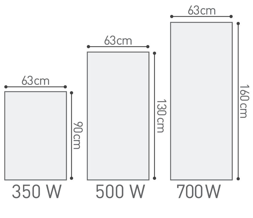 Le choix de la puissance dépend des besoins calorifiques de la pièce (h : 2,5 m) et de l'utilisation du système de chauffage.