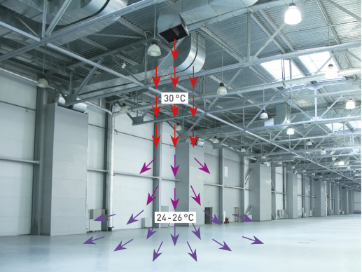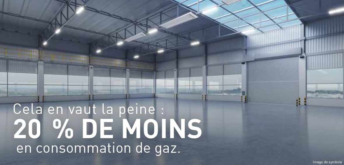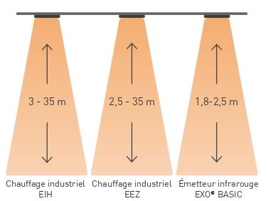 > Idéal pour les grands halls avec des espaces de travail et de stockage afin de chauffer uniquement les zones où se trouvent les postes de travail des employés.