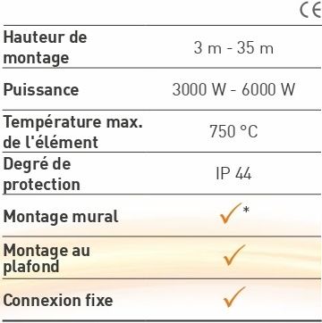 > Cela augmente l'intensité de la chaleur à une hauteur de montage plus basse.