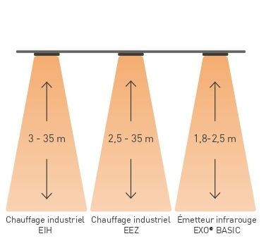 > Idéal pour les grands halls avec des espaces de travail et de stockage afin de ne chauffer que les zones où se trouvent les postes de travail des employés.