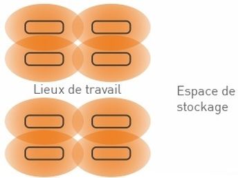 Chauffage ciblé des zones/postes de travail, pour lequel la température totale de la pièce peut être abaissée à 19 °C par exemple.