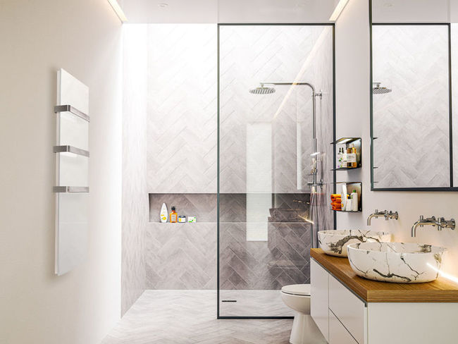 Tip: voor maximaal comfort kunnen de infraroodverwarmingen ideaal worden gecombineerd met een eFLOOR vloerverwarming van ETHERMA. De onzichtbare warmte van onderaf in combinatie met de directe stralingswarmte van de wand of het plafond zorgt voor een ongeëvenaard comfortklimaat - vooral in de badkamer. Warme voeten en warme handdoeken? Dat is onverslaanbaar.