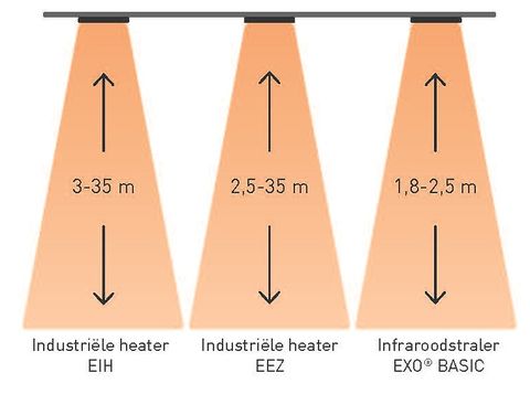 > Ideaal voor grote hallen met werk- en opslagruimten om alleen die zones te verwarmen, waar de medewerkers hun werkplekken hebben.