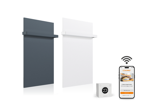 De SMART-versie van de LAVA® BATH PURE 3.0 is uitgerust met de intelligente ETHERMA SMARTBOX en de SMARTCUBE draadloze thermostaat. Dit maakt draadloze bediening via de ETHERMA SMART-app mogelijk - comfortabel via smartphone of tablet. Zo regelt u uw badkamerverwarming individueel op basis van het tijdstip van de dag, de temperatuur of aanwezigheid of afwezigheid - voor maximale efficiëntie en minimale energiekosten.