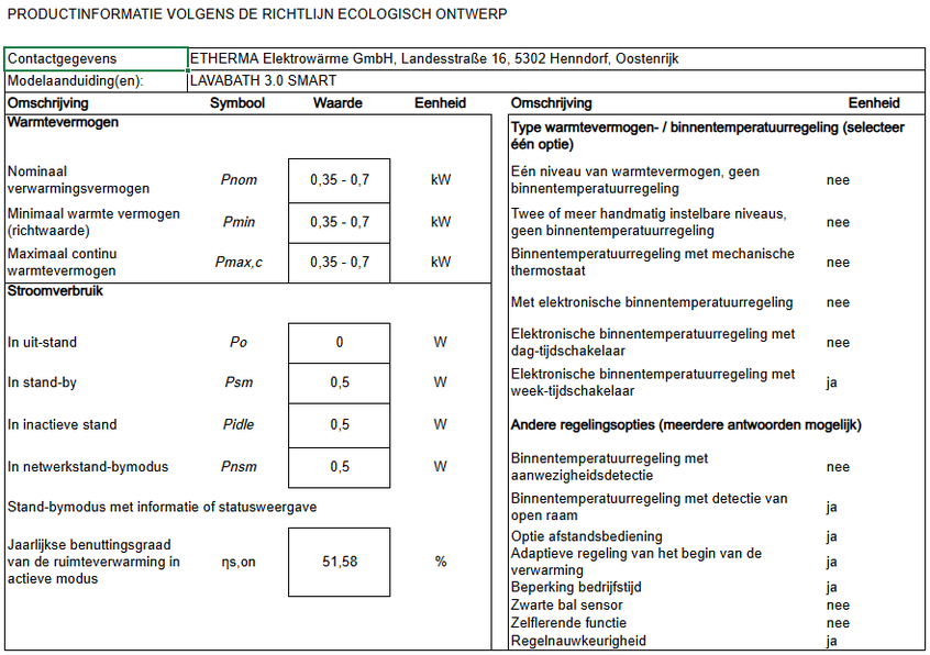 Het basismodel is in combinatie met een geschikte thermostaat conform het ecologisch ontwerp. -