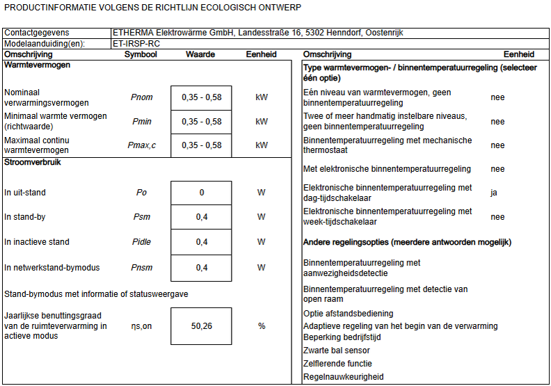 ETHERMA IRSP-RC Verplaatsbaar infraroodpaneel