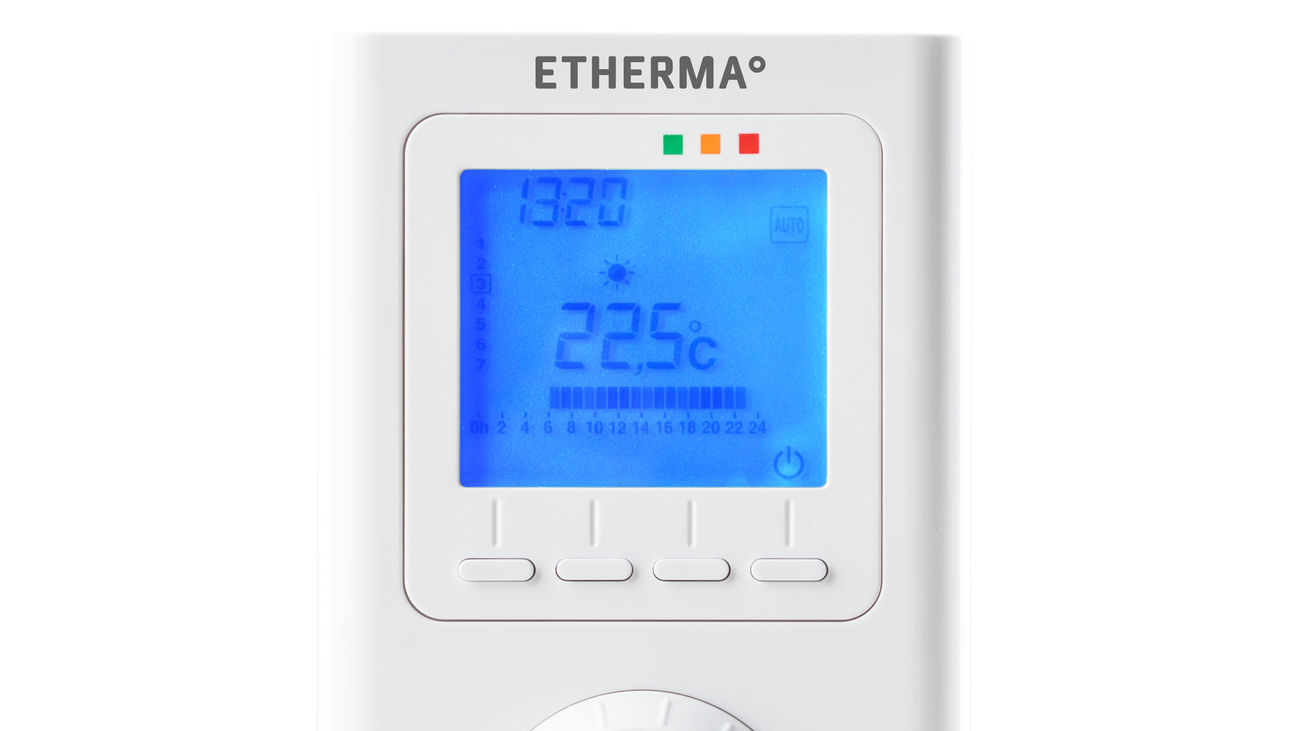 Met elektrische verwarming is de thermostaat vaak het enige dat u ziet. Daarom is het belangrijk dat het design goed is. De ETHERMA-thermostaten hebben een hoge functionaliteit met een aantrekkelijk design.