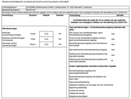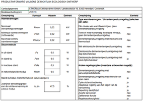 Dit product is een handdoekhouder met een nominaal verwarmingsvermogen van meer dan 250 W. Om te voldoen aan de bindende ecodesign-eisen van Verordening (EU) 2024/1103 van de Commissie, moet het worden aangevuld met een regelaar die ten minste de volgende regelingsfuncties vervult: elektronische kamertemperatuurregelaar met weekregeling (TW)
